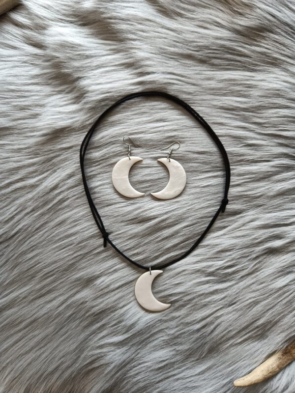 Koko/mitat: Korun koko ilman koukkua 4cm, korvakorujen koko koukkuineen 5,8cm. Kaulakorussa: koruosan korkeus 4cm, säädettävä nauha 80cm.