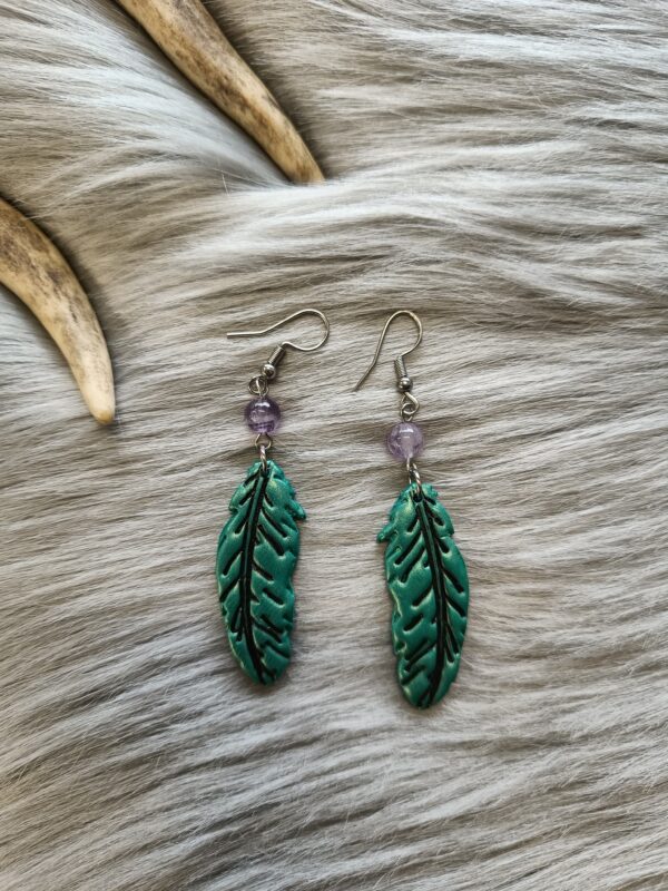 Kauniit ja erittäin kevyet sulka-korvakorut itselle tai lahjaksi. Näissä sulissa myös kivihelmenä ametisti. Ametisti tasapainottaa tunnekuohuja, lievittää stressiä, vihaa, ärtymystä ja ahdistusta.